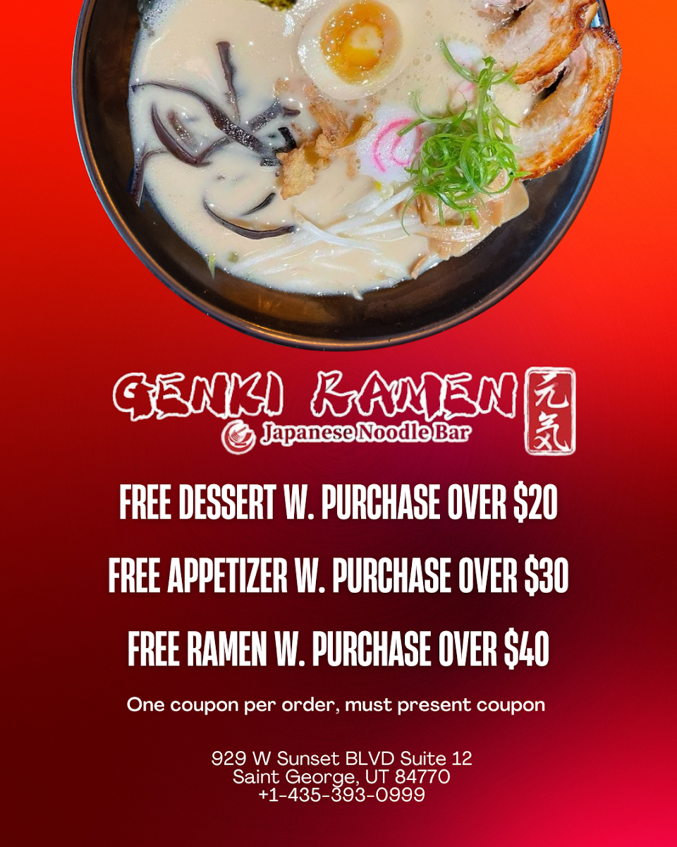 Welcome to Genki Ramen - St. George, a delightful culinary gem located at 929 W Sunset Blvd. This vibrant eatery is redefining Japanese cuisine in the area with an array of mouthwatering dishes and impeccable service. The menu features a variety of tantalizing options, including Teriyaki Bowls such as the crispy Chicken Katsu and succulent Teriyaki Shrimp.